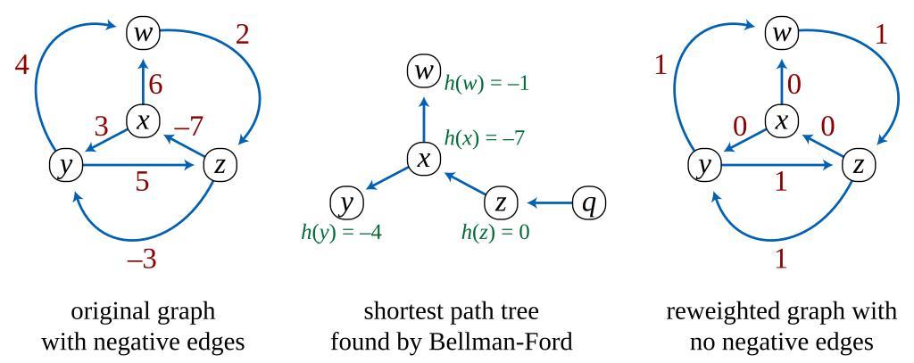 | Keywords: Johnson's algorithm.svg Johnson's algorithm for transforming a shortest path problem in a graph with negative edge weights into an equivalent problem with non-negative weights Own 2008-04-04 David Eppstein en wikipedia David Eppstein Shortest paths algorithms Files by User David Eppstein from en wikipedia Graphs graph theory |