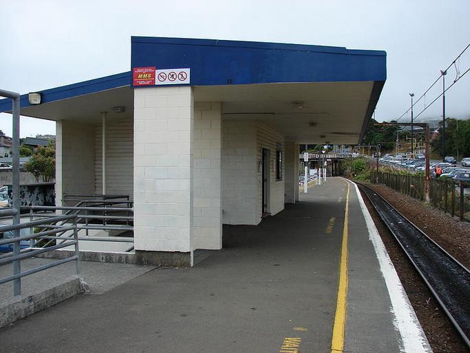 | Keywords: 41 13S 174 48E Johnsonville railway station is the terminus of the Johnsonville Line, one of eight stations on the commuter branch railway north of Wellington in New Zealand’s North Island. Opened 21 September 1885. Attribution: Matthew25187 |