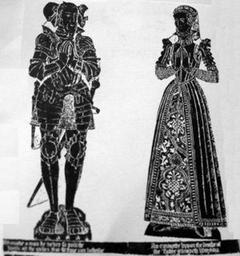 | Keywords: JohnWyndham&ElizabethSydenhamWatchet.jpg en photograph of 19th c brass rubbing of monumental brass of Sir John Wyndham his wife Elizabeth Sydenham d 1571 St Decuman's Church Watchet Somerset http //www flickr com/photos/52219527 N00/5312253292/ unknown sculptor; photo by jmc4 - Church Explorer monumental brass c 1571 Church of Saint Decuman in Watchet interior PD-Art | ||||