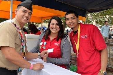 | Keywords: Joint Base San Antonio military ambassadors join Fiesta royalty, special guests to kick off Fiesta San Antonio 150416-N-UR169-006.jpg en Petty Offi cer 2nd Class Daniel Morales a recruiter with the Navy Recruiting District San Antonio at Joint Base San Antonio-Fort Sam Houston speaks with Andrew Flores 19 and Analisa Martinez 22 who are both interested in careers with the Navy during Fiesta Fiesta the official kickoff event for the annual celebration Fiesta San Antonio a 10-day long series of events honoring the defenders who fought in Battle of the Alamo and the Battle of San Jacinto in 1836 both important events that shaped the history of Texas and this country Morales also a military ambassador representing the Navy is responsible for providing leadership and motivation to both fellow and future Sailors Originally from Manila Philippines Morales is rated as an aviation mechanic 2015-05-14 L A Shively https //www dvidshub net/image/1942787 150416-N-UR169-006 2015-05-19 15 53 SAN ANTONIO TX US PD-USGov-Military-Navy Joint Base San Antonio Images from DoD uploaded by Fæ |