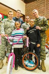 | Keywords: Joint Base volunteers, police and Toys for Tots help disadvantaged youth 131218-N-WY366-007.jpg en Military and civilian personnel and their families living or working at Joint Base Anacostia-Bolling JBAB volunteered and helped make the Christmas holiday season more joyful for nearly 300 youth in the District of Columbia ™s Ward 8 at a Disadvantaged Youth Holiday Party sponsored by the Metropolitan Police Department ™s Seventh District on Dec 18 The JBAB volunteers helped serve food to the children; pass out gifts and help with the distribution of 80 bicycles donated to the Marine Corps Foundation ™s Toys for Tots program for the neediest of the children The JBAB-based U S Air Force Rock Band Max Impact kicked the event off with energetic holiday music that quickly had children on their feet and dancing Santa and Mrs Claus arrived at the event by police helicopter where they were met by Rudolph the Red-nosed Reindeer and Frosty the Snowman D C Mayor Vincent Gray stopped by to visit with the children and wish them a Merry Christmas <br>Unit Joint Base Anacostia-Bolling 2013-12-18 Lt Cmdr Jim Remington https //www dvidshub net/image/1142702/joint-base-volunteers-police-and-toys-tots-help-disadvantaged-youth 131218-N-WY366-007 2013-12-20 19 46 WASHINGTON DC US PD-USGov-Military-Navy Joint Base Anacostia-Bolling Images from DoD uploaded by Fæ |