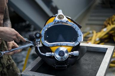 | Keywords: Joint UCT diver training 150111-N-QA919-575.jpg en Builder 2nd Class Nate Emmett with Underwater Construction Team Two UCT TWO performs maintenance on a dive helmet prior to commencing dive operations during diver training aboard USAV Matamoros LCU-2026 Diver training is a two-week joint training evolution between Underwater Construction Team One and UCT TWO designed to reinforce standard operating procedures qualify personnel maintain proficiency and evaluate dive protocol during scuba surface supplied and recompression chamber operations U S Navy photo by Mass Communication Specialist 3rd Class Tyler Thompson/Released 2015-01-11 Petty Officer 3rd Class Tyler Thompson https //www dvidshub net/image/1722849 150111-N-QA919-575 2015-01-13 18 54 NAVAL AIR STATION KEY WEST FL US 4 PD-USGov-Military-Navy Naval Air Station Key West Images from DoD uploaded by Fæ |