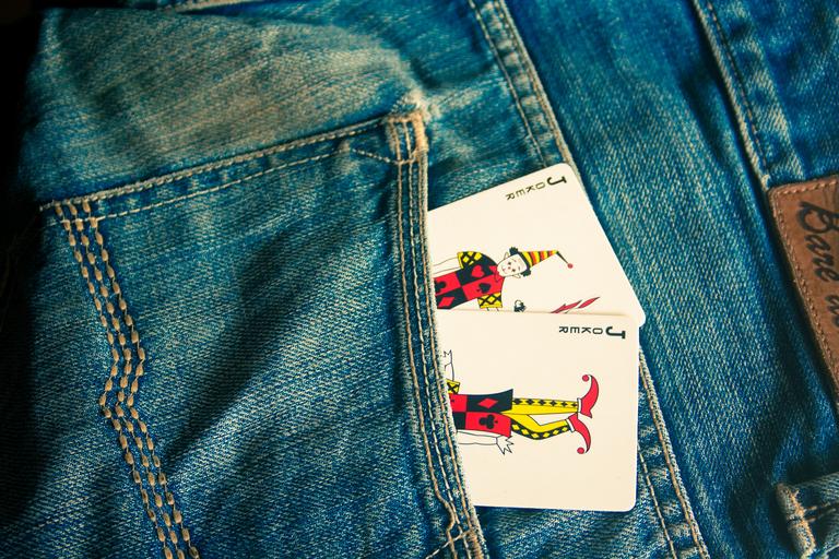 Keywords: joker cards jeans blue pocket fashion clothing casual denim cotton cloth trousers design pants fabric clothes textile wear material fiber seam style stitch washed indigo garment apparel