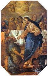 | Keywords: José Teófilo de Jesus - Jesus institui a Eucaristia2.jpg Artwork Creator José Teófilo de Jesus Jesus Institui a Eucaristia painel lateral da Capela do Santíssimo Sacramento da Antiga Sé 1793 technique oil canvas cm 177 7 108 Museu de Arte Sacra da Universidade Federal da Bahia Salvador Brazil Signed and dated File José Teófilo de Jesus - Jesus institui a Eucaristia jpg PD-old-100 Other versions José Teófilo de Jesus 1790s paintings from Brazil 1793 1793 paintings Baroque paintings from Brazil Museu de Arte Sacra da Bahia Communion of the Apostles Paintings of the passion of Jesus Christ |
