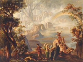 | Keywords: Josef Hoffmann - Closing scene of Das Rheingold final.jpg Artwork creator Josef Hoffmann Austrian painter Siegfried returns to the Hall of the Gibichungs in act 2 scene 1 of Götterdämmerung 1876 Oil on canvas cm 82 5 107 5 Richard-Wagner-Museum Bayreuth Germany cite journal Carnegy Patrick w Patrick Carnegy 15th Earl of Northesk 2010 July Designs on the Ring The Wagner Journal 4 2 41 55 London United Kingdom The Wagner Journal Barry Millington PDF 1755-0181 2011-06-23 http //www nottingham ac uk/is/gateway/ejournals/wagner_journal/2010_04_02_July_2010 pdf object history Hoffmann was offering to sell copies of the final versions of his paintings to ready buyers Carnegy pp 46 48 credit line Carnegy suggests this is the oil sketch; however Angerer's photograph does not match this the facial expression of the leftmost character the shading of the stone below his right arm and the position of the hand of the female on his left side Those match the cover of the journal which Carnegy says is the final instead As the photograph is of the oil sketch Carnegy might have mixed up his photographs accession number Carnegy 2010 p 44 <gallery> File Victor Angerer - Josef Hoffmann's Closing scene of Das Rheingold cropped jpg Angerer's photo of the sketch File Victor Angerer - Josef Hoffmann's Closing scene of Das Rheingold cropped bw jpg Black and white version of the photo File Victor Angerer - Josef Hoffmann's 03-14 Walhall jpg From a postcard </gallery> PD-old-100-1923 PD-1923 Das Rheingold Josef Hoffmann Austrian painter 1876 oil on canvas paintings 19th-century paintings location missing Rainbows in art |