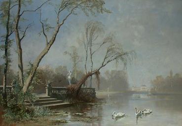 | Keywords: Josef Wenglein Nymphenburg.jpg Joseph Wenglein Blick von der Seeseite auf Schloss Nymphenburg 1883 Öl auf Leinwand 70 5 x 100 cm Joseph Wenglein View from the lake to Nymphenburg Palace near Munich 1883 oil on canvas 70 5 x 100 cm http //www hampel-auctions com/ 1883 Creator Joseph Wenglein PD-old-auto 1919 Gardens of Nymphenburg Palace Joseph Wenglein Images from Hampel Auctions | ||||