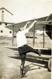 | Keywords: joseph e. (joe) crosson special collection photo josephejoecrossonspecialcollectionphoto â curtiss aeroplane and motor company âcurtissaeroplaneandmotorcompany hand propping handpropping outdoor Catalog #: 09_00710 Title: Joseph E. (Joe) Crosson Special Collection Photo Additional Information: Unidentified male pilot starting the propellor of a Curtiss JN-4 aircraft, Joe Crosson was an experienced arctic pilot who became a national hero between the world wars flying mercy missions, including a dangerous search in Siberian winter for lost pilot, Carl Ben Eielson, and a winter flight in an open cockpit carrying serum to Barrow Alaska. He was the first pilot to land on a glacier. Corporation Name: Curtiss Aeroplane and Motor Company Tags: Joseph E. (Joe) Crosson Special Collection Photo, Curtiss Aeroplane and Motor Company Repository: San Diego Air and Space Museum Archive Catalog #: 09_00710 Title: Joseph E. (Joe) Crosson Special Collection Photo Additional Information: Unidentified male pilot starting the propellor of a Curtiss JN-4 aircraft, Joe Crosson was an experienced arctic pilot who became a national hero between the world wars flying mercy missions, including a dangerous search in Siberian winter for lost pilot, Carl Ben Eielson, and a winter flight in an open cockpit carrying serum to Barrow Alaska. He was the first pilot to land on a glacier. Corporation Name: Curtiss Aeroplane and Motor Company Tags: Joseph E. (Joe) Crosson Special Collection Photo, Curtiss Aeroplane and Motor Company Repository: San Diego Air and Space Museum Archive |