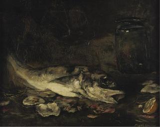 | Keywords: Joseph Frank Currier - Still life with fish and oranges.jpg Artwork Creator Joseph Frank Currier oil on canvas cm 37 45 7 object history credit line Frank Currier ~ lower right signature accession number 1 http //www arcadja com/auctions/en/currier_joseph_frank/artist/45581/ Sotheby's via ARCADJA auction results<br/>2 http //www sothebys com/de/auctions/ecatalogue/2007/fine-art-old-masters-to-contemporary-n08333/lot 406 html Sotheby's New York 2007 06 13 lot 406 PD-old-100-1923 1909 Joseph Frank Currier 19th-century still life paintings Still life paintings of fish Images from Sotheby's |