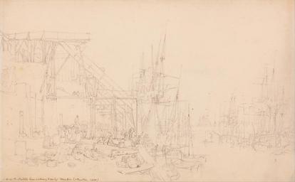 | Keywords: Joseph Mallord William Turner - The Hurries, Coal Boats Loading, North Shields - Google Art Project.jpg ~ 1795 London 1775 Chelsea 1851 Joseph male 2322909 Mallord William Turner British 1775 - 1851 /collection/yale-center-for-british-art/artwork/the-hurries-coal-boats-loading-north-shields-joseph-mallord-william-turner/2419610/ Joseph Mallord William Turner Attributed to /artist/j-m-w-joseph-mallord-william-turner/4127042/ 4127042 /collection/yale-center-for-british-art/ Yale Center for British Art 2305845 http //britishart yale edu/ 2/23/2012 10 27 40 PM /collection/yale-center-for-british-art/artwork/the-hurries-coal-boats-loading-north-shields-joseph-mallord-william-turner/2419610/ 1790 ca 1795 loading laborers coal docks ships sketch marine art Graphite on medium slightly textured cream wove paper 219 2419610 False 1800 3/25/2012 7 07 56 PM YCBA/lido-TMS-5468 http //collections britishart yale edu/vufind/Record/1669733 Yale Center for British Art Paul Mellon Collection drawing 1790 1810 London Creation w356 x h219 cm ca 1795 False 1 62025316455696 Item the-hurries-coal-boats-loading-north-shields-joseph-mallord-william-turner The Hurries Coal Boats Loading North Shields h 356 Inscribed in pen and brown ink in Ruskin's hand lower left J M W T Middle time inclining to early very fine Ruskin 1880 ; inscribed in graphite verso center left The Hurries Inscription _Marks Watermark J Whatman 1808 Inscription _Signed_and_Dated Not signed not dated Not on View Graphite on medium slightly textured cream wove paper loading laborers coal docks ships sketch marine art special url_id zgEWDbFdFPElIQ PD-old-100-1923 1851 Google Art Project works by Joseph Mallord William Turner Drawings by Joseph Mallord William Turner |