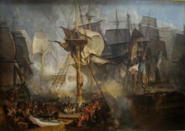 | Keywords: Joseph Mallord William Turner 027.jpg en The Battle of Trafalgar as Seen from the Mizen Starboard Shrouds of the Victory Die Schlacht bei Trafalgar von den Steuerbordbesanwanten der Victory aus gesehen Oil on canvas cm 172 7 238 8 ~ 1806 Institution Tate Britain Own Creator Joseph Mallord William Turner PD-old-100 Other versions Turner The Battle of Trafalgar 1806 jpg HMS Victory ship 1765 in art Paintings of the Battle of Trafalgar Romantic paintings Paintings by Joseph Mallord William Turner in Tate Britain 19th-century sailing ships in paintings 1800s paintings |