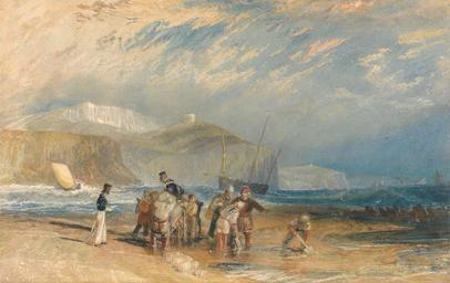 | Keywords: Joseph Mallord William Turner - Folkestone Harbour and Coast to Dover - Google Art Project.jpg ~ 1829 watercolor London 1775 Chelsea 1851 Joseph male 2322909 Mallord William Turner British 1775 - 1851 /collection/yale-center-for-british-art/artwork/folkestone-harbour-and-coast-to-dover-joseph-mallord-william-turner/2315943/ Joseph Mallord William Turner Artist /artist/j-m-w-joseph-mallord-william-turner/4127042/ 4127042 /collection/yale-center-for-british-art/ Yale Center for British Art 2305845 http //britishart yale edu/ 2/23/2012 10 28 23 PM /collection/yale-center-for-british-art/artwork/folkestone-harbour-and-coast-to-dover-joseph-mallord-william-turner/2315943/ 1824 ca 1829 men sailors art beaches cliffs harbour coast shovels sailboats landscape Watercolor gouache and scraping out on moderately thick slightly textured cream wove paper 289 2315943 False 1834 3/24/2012 11 13 28 AM YCBA/lido-TMS-5490 http //collections britishart yale edu/vufind/Record/1669761 Yale Center for British Art Paul Mellon Collection painting 1820 1840 Chelsea Creation w454 x h289 cm ca 1829 False 1 58513931888545 Item folkestone-harbour-and-coast-to-dover-joseph-mallord-william-turner Folkestone Harbour and Coast to Dover f 454 Inscribed in graphite verso upper center + ; in graphite verso center Cou < > Har < > Inscription _Signed_and_Dated Not signed not dated Not on View Watercolor gouache and scraping out on moderately thick slightly textured cream wove paper men sailors art beaches cliffs harbour coast shovels sailboats landscape special url_id mQGt8d4ifRASVA PD-old-100-1923 1851 Paintings by Joseph Mallord William Turner in the United States Google Art Project works by Joseph Mallord William Turner |