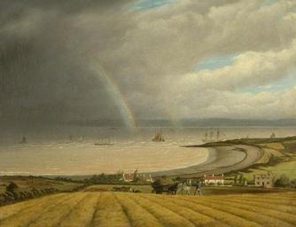| Keywords: Joseph Walter - A view from Portishead towards Wales.jpg Joseph Walter Joseph Walter 1783 “1856 This view looks in the opposite direction to Joseph Walter's 'A Ship Passing Portishead' and Portishead Point is at the end of the sweep of the bay There is an autumn storm approaching and vessels including a steam packet a merchant ship and many coastal craft hasten towards the mouth of the Avon and calmer waters 1832 oil canvas cm 48 2 63 5 Institution Bristol City Museum and Art Gallery object history gift from James Fuller Eberle 1921 credit line accession number K4551 http //www bbc co uk/arts/yourpaintings/paintings/a-view-from-portishead-towards-wales-189224 BBC Your Paintings PD-Art-100 Joseph Walter View from Portishead towards Wales Bristol City Museum and Art Gallery Portishead Somerset 19th-century sailing ships in paintings Images from BBC Your Paintings Rainbows in paintings 1830s paintings in the United Kingdom Agriculture in art 1830s landscape paintings |