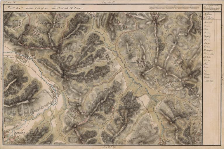 Keywords: Josephinische Landaufnahme pg027.jpg wikitable style margin 1em auto 1em auto width 80 Name shown on the map<br>Nume din hartă Administrative unit<br>Unitate administrativă Romanian name<br>Numele românesc Hungarian name<br>Numele unguresc German name<br>Numele german Country today<br>Ţara de astăzi - Badátson Kraszna megye<br>Comitatul Crasna Bădăcin Szilágybadacson Romania - Szöts hu Közép-Szolnok vármegye<br> ro Comitatul Solnocul de Mijloc Sici Somlyószécs Romania - Balla Kraszna megye Borla Szilágyballa Romania - Goroszlo Kraszna megye Guruslău Magyargoroszló Romania - Diosod Közép-Szolnok megye Dioşod Diósád Romania - N Doba Közép-Szolnok megye Doba Nagydoba Romania - Görtsön Közép-Szolnok megye Gârceiu Szilágygörcsön Romania - Hara Klyan Közép-Szolnok megye Hereclean Haraklány Romania - Badon Kraszna megye Badon Bádon Romania - Beretsen Kraszna megye Pericei Szilágyperecsen Romania - Varsoltz Kraszna megye Vârşolţ Varsolc Romania - Vaja Közép-Szolnok megye Crişeni Vaja Romania - Czigany Közép-Szolnok megye Crişeni Cigányi Romania - Panit Közép-Szolnok megye Panic Szilágypanit Romania - Retse Kraszna megye Recea Krasznarécse Romania - Kraszna Kraszna megye Crasna Kraszna Romania - Zilah Közép-Szolnok megye Zalău Zilah Waltenberg Romania - Vártelek Közép-Szolnok megye Ortelec Vártelek Romania - Grand Duchy of Transylvania 1769-1773 Josephinische Landaufnahme pg 027 Harta Iosefină a Transilvaniei 1769-1773 Josephinische Landaufnahme pg 027 Österreichisches Staatsarchiv Kriegsarchiv B IX 715 Original-Aufnahmskarte des Grossfürtenthums Siebenbürgen Geometrisch aufgenommen und bearbeitet in den Jahren 1769 bis 1773 unter der Direction des Obristen von Fabris theils durch Officiere des grossen Feld-Generalstabes theils auch von verschiedenen aus dem in Siebenbürgen bequartierten Regimentern zu diesem Geschäfte beigezogenen Individuen Historische Militärkarte der österreichisch-ungarischen Monarchie 1769-1773 PD-old-100 Clickable Map of the Grand Duchy of Transylvania GrandDuchyOfTransylvania 1769-73 Josephinische Landaufnahme |