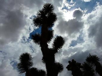 Keywords: joshua tree josuabaum yucca agavengewächs mojave desert joshua tree national park national park thorn spiny prickly tree plant flora desert desert tree back light sun clouds sky