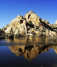 Keywords: joshua tree national park boulders rocks water pond reflection sky nature desert landscape california outdoors sunny scenic geology america usa