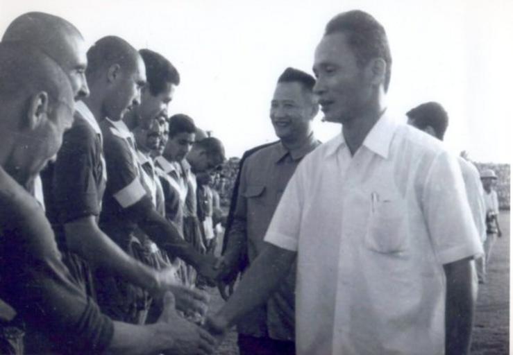 | Keywords: Joueurs du FLN avec M. Phan Van Dong (1959).jpg fr Match de l'équipe du FLN contre l'équipe Nationale du Vietnam Joueurs Ben Titou Capitaine Soukan Abderrahmane mazouz Aek Said brahimi Sokan Mohamed Amar Ronaie Mokhtar Aribi ; M Phan Van Dong Premier Ministre http //www ambalgvn org vn/relation/archives html M NGUYEN DUC MINH ancien interprète à l'Ambassade d'Algérie au Vietnam 1959-11-22 PD-Vietnam PD-Algeria FLN football team | ||||