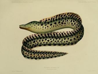 | Keywords: JournalMuseumGodeffroyHeftXVIIFischederSudseeHeftIxITaf165.jpg Gymnothorax afer http //www biodiversitylibrary org/ Of plate unknown Journal Museum Godeffroy s 1880 Fische der Südsee Journal Museum Godeffroy Werner Winter Gymnothorax afer PD-old |