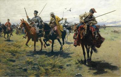 | Keywords: Józef Brandt - Aresztowanie kaukaskiego Szefów.jpg Artwork Creator Józef Brandt de Die Gefangennahme eines kaukasischen Anführers en The capture of a Caucasian chief pl Aresztowanie kaukaskiego Szefów oil canvas cm 70 110 5 object history PROVENANCE Acquired by the great aunt of the present owner in the 1920s; thence by descent credit line signed and inscribed Jozef Brandt Monachum / Warszawy lower left accession number http //www sothebys com/de/catalogues/ecatalogue html/2007/19th-century-european-paintings-including-german-austrian-central-european-paintings-and-the-orientalist-sale-l07101 /r /de/ecat fhtml L07101 html+r m /de/ecat lot L07101 html/28/ Sotheby's PD-old-auto-1923 1915 Józef Brandt Paintings of Cossack men on horseback Images from Sotheby's History of cavalry through painting |