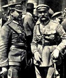 | Keywords: Józef Piłsudski and Józef Haller after victory in battle of Warsaw in 1920.png en Józef Piłsudski and Józef Haller after victory in battle of Warsaw in 1920 Album zjednoczenia Warszawa 1934 digital version http //zbc uz zgora pl/dlibra/doccontent id 8266 dirids 1 anonymous 1920 PD-Polish Anonymous-EU Photographs of Józef Piłsudski Józef Haller de Hallenburg Polish-Soviet War Warsaw in the 1920s Marshal Józef Piłsudski's sabre | ||||
