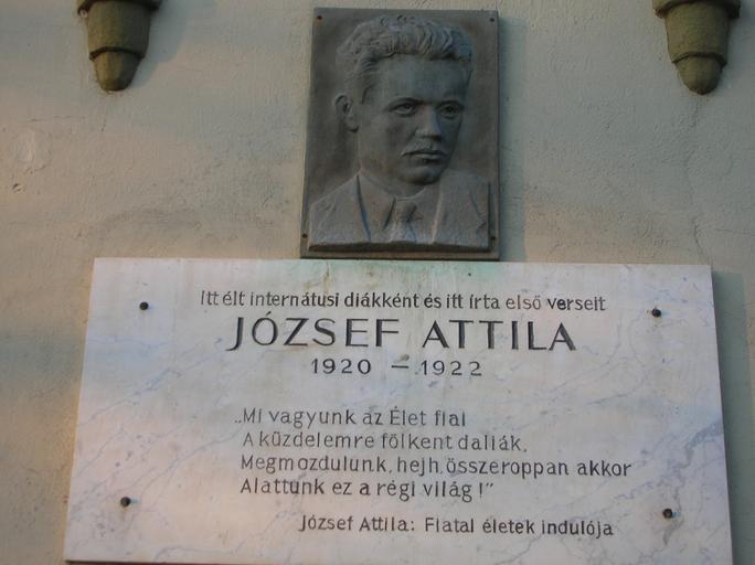 | Keywords: JózsefAttilaInternátusMakó.JPG en Memorial tablet and relief to Attila József Hungarian poet on the wall of the building which functioned as boarding school where he also lived when he was a student in Makó hu József Attila emléktáblája a korábbi Internátus falán a költőt ábrázoló domborművel Own User Petrobolos 2008-12-29 Plaques to Attila József Here-studied plaques in Hungary Reliefs in Makó Plaques in Makó Reliefs of Attila József Gyula Nagy | ||||