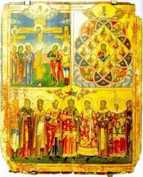 | Keywords: Трехчастная икона.jpeg ru Т ехчастная икона с Распятием с п едстоящими и Союзом любви XIX в Ветка Из исто ии фондов научной библиотеки осковского униве ситета 1978 Ил 147 19th-century http //www cirota ru/forum/view php subj 47937 fullview 1 order asc author Custom license marker 2014 01 09 PD-Art Uploaded with UploadWizard Vietka School Soyuzom lyubvi svyazannyye apostoly 19th-century icons of Belarus Icons of the crucifixion of Christ | ||||