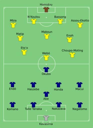 | Keywords: JPN-CMR 2010-06-14 hu.svg en The Hungarian version of PeeJay's work own CFC 2010-06-15 FIFA World Cup 2010 line-ups Japan national football team line-ups Cameroon national football team line-ups Cameroon at the 2010 FIFA World Cup Japan at the 2010 FIFA World Cup |