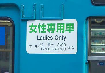 | Keywords: JR-LadiesOnly-M0944.jpg Sign on a JR West train Ladies Only I took this photo Fg2 I contribute my rights in it to the public domain; individuals and organizations retain rights to images in the file Women-only passenger coaches in Japan JNR 103 JR West Files by User Fg2 |