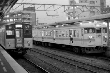 | Keywords: JR Shikoku 111 and 121 series at Takamatsu.JPG en JR Shikoku 111 series and 121 series at Takamatsu station ja 高 駅に 車する111系と121系 1988-03-16 own Hahifuheho other versions cc-zero JNR 121 JNR 113 JR Shikoku Trains at Takamatsu Station Kagawa 1988 in rail transport in Japan Black and white photographs of Japan in the 1980s Black and white photographs of trains in Japan 1988 in Kagawa prefecture Photographs taken on 1988-03-16 | ||||