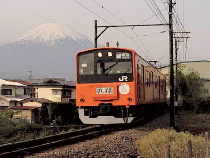 | Keywords: JRE EC201 Fujikyu.jpg A JR East 201 series EMU ja 日 旅客鉄道 201系 勤型直流電車 Photo by Cassiopeia_sweet Cassiopeia_sweet 1999-05-22 JNR 201 JR East Fuji Kyuko Line Trains with Mount Fuji Orange rail vehicles May 1999 in Japan 1999 in rail transport in Japan |
