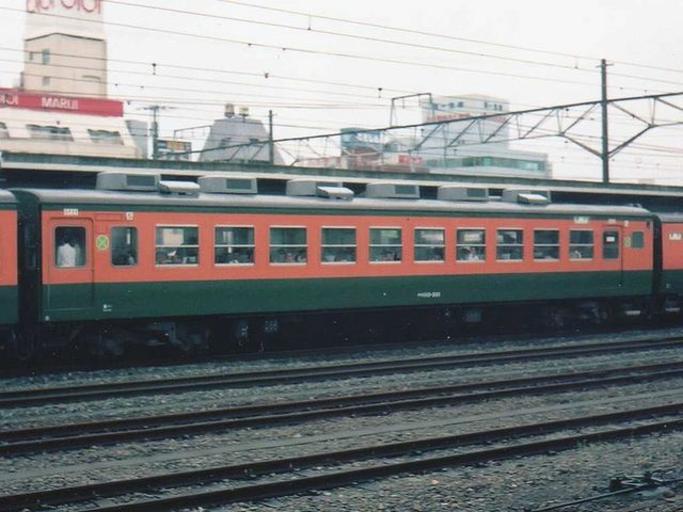 Keywords: JRE-Ts110-501.jpg East Japan Railway Company EMU Type 110 Green Car First Class Car Saro110-501 remodeled from Saha165-7 Tokaido Line at Odawara Sta Photo by Cassiopeia_sweet ca 1990 Cassiopeia_sweet JNR 113 JR East Odawara Station