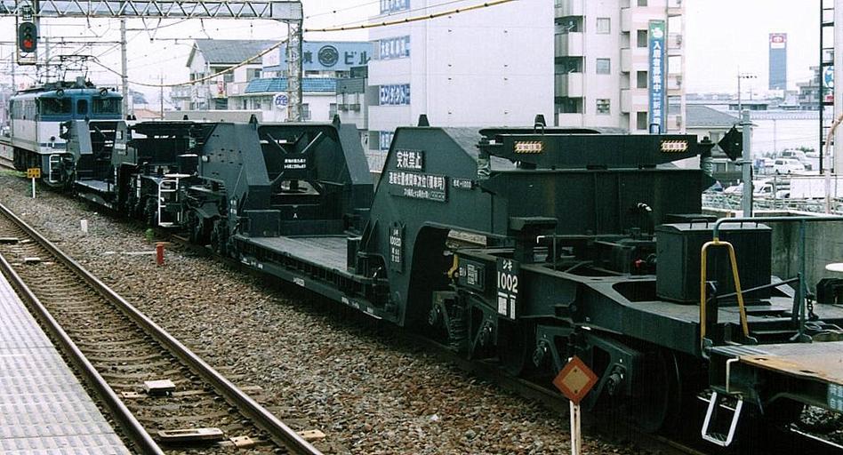 | Keywords: JRF Siki1002.JPG Train of wagons of JR freight Type Shiki 1000 wagon 1001・1002 Japan Tiba prefecture JR貨物シキ1000形貨車 1001・1002 の重 の貨物列車 武蔵野線 南流山駅にて撮影 own work photographed by まも Mamo 投稿 人が撮影 2004-06-13 まも Mamo Schnabel cars Freight cars of JR Freight |