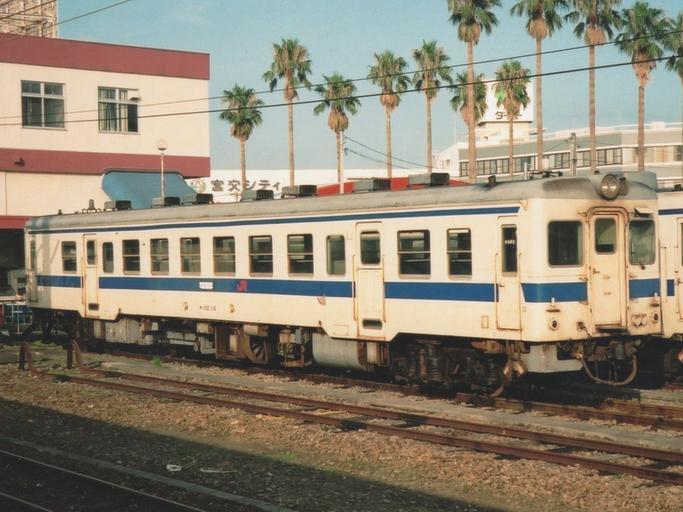 Keywords: JRK-DC52-114.jpg JR Kyushu KiHa 52 DMU car Kiha 52 114 at Minami-Miyazaki Station Own 1993-08-23 Cassiopeia_sweet 1993 in rail transport in Japan JNR Kiha 52 JR Kyushu Minami-Miyazaki Station