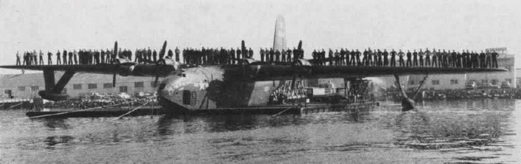 | Keywords: JRM with125men NAN5-54.jpg 125 men standing from one wingtip to another on a Martin JRM Mars U S Navy Naval Aviation News May 1954 http //www history navy mil/nan/backissues/1950s/1954/may54 pdf unknown USN PD-USGov-Military-Navy Martin JRM Mars |