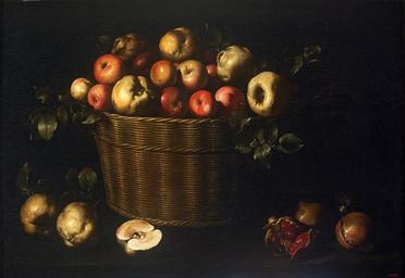 | Keywords: Juan de Zurbarán - Basket with Apples, Quinces and Pomegranates - Google Art Project.jpg - 1643 1645 1620 Llerena 1620 1649 Seville 1649 Juan de 574467 Zurbarán 1620 - 1649 /collection/museu-nacional-dart-de-catalunya/artwork/basket-with-apples-quinces-and-pomegranates-juan-de-zurbaran/588710/ Juan de Zurbarán /artist/juan-de-zurbaran/4126442/ 4126442 /collection/museu-nacional-dart-de-catalunya/ Museu Nacional d'Art de Catalunya - MNAC Barcelona 497131 http //www mnac cat/ 12/28/2011 4 41 24 PM /collection/museu-nacional-dart-de-catalunya/artwork/basket-with-apples-quinces-and-pomegranates-juan-de-zurbaran/588710/ 1643 Still life Oil on canvas True 760 588710 True 1645 1643-1645 /collection/museu-nacional-dart-de-catalunya/level/floor-1/2539705/ Floor 1 3/24/2012 5 51 36 AM 024259-000 http //art mnac cat/fitxatecnica html;jsessionid inventoryNumber 024259-000 lang en Museu Nacional d'Art de Catalunya Painting 1640 1650 w1070 x h760 cm 1643-1645 False 1 45454545454545 Object /collection/museu-nacional-dart-de-catalunya/level/floor-1/2539705/room-39/559555/ Room 39 basket-with-apples-quinces-and-pomegranates-juan-de-zurbaran Basket with Apples Quinces and Pomegranates b 1070 Permanent loan from the Gil Collection 1922; acquired 1944 024259-000 Oil on canvas Still life special url_id kwG3W1H57tVdlQ PD-old-100-1923 1649 Renaissance and Baroque paintings in the MNAC Juan de Zurbarán Google Art Project works by Juan de Zurbarán |