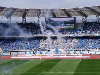 Keywords: Jubilo-Iwata Vs Yokohama-F.Marinos 2003.JPG en Jubilo-Iwata Vs Yokohama-F Marinos 2003 ja 2003年Jリーグ開幕戦 ジュビロ磐田対横 F.マリノス own Waka77 2002-03-21 Cc-zero Júbilo Iwata Association football supporters of Japan