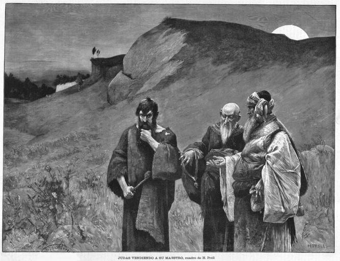 Keywords: Judas vendiendo a su maestro, de Hermann Prell.jpg Hermann Prell recogida en la revista española La Ilustración Artística before 1888 1888 3 26 VII Hermann Prell 1854-1922 PD-Scan PD-old-auto-1923 1922 Hermann Prell La Ilustración Artística 1888 Paintings of Judas Iscariot |