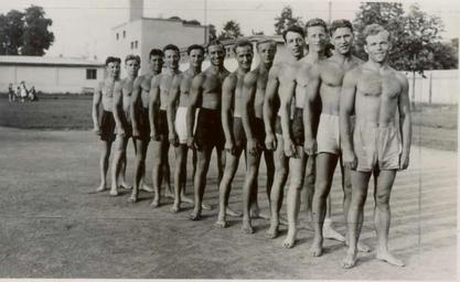 | Keywords: Jugoslovanski orodni telovadci, Sokoli, v Pragi na slovenskem prvenstvu 1938.jpg sl Jugoslovanski orodni telovadci Sokoli v Pragi na slovenskem prvenstvu 1938 IKKSQOYM Author 1938 PD-Slovenia Group photographs of sportspeople from Slovenia Artistic gymnasts from Slovenia Black and white photographs of the Czech Republic |