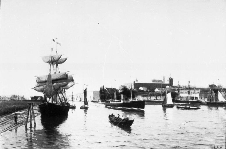 | Keywords: Julius Huth - Hafen von Stettin.jpg Hafen von Stettin ca 1890 oil canvas cm 73 5 105 5 Deutsches Schiffahrtsmuseum Bremerhaven object history credit line accession number I/1684/77 00033410 PD-Art-100 Julius Huth Paintings in Deutsches Schiffahrtsmuseum Szczecin in art 1890 paintings Black and white reproductions of paintings in color Images from Bildarchiv Foto Marburg | ||||