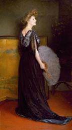 | Keywords: Julius LeBlanc Stewart - Portrait of Mrs. Francis Stanton Blake.jpg Artwork 1908 Oil on canvas cm 200 112 4 Institution Walters Art Museum Baltimore accession number object history credit line Ulrich W Hiesinger Julius LeBlanc Stewart American painter of the Belle Epoque New York 1998 <gallery>Julius Le Blanc Stewart - Portrait of Mrs Francis Stanton Blake - Walters 372465 jpg</gallery> PD-old-auto 1919 DEFAULTSORT 1908; Mrs Francis Stanton Blake Julius Leblanc Stewart Portrait paintings in the Walters Art Museum 1900s dresses 1908 1908 oil on canvas paintings in the United States Portrait 1908 portrait paintings 20th-century hair fashion 20th-century oil portraits of standing women at full length 20th-century portrait paintings in the United States 20th-century profile portrait paintings of women Females with black dresses in art Folding screens in art Portrait paintings of women holding feather fans |