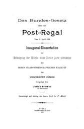 | Keywords: Julius Oetiker book.png A book title page Das Bundes-Gesetz über das Post-Regal A dissertation by Julius Oetiker University of Zurich 1894 Published in 1901 Scanned by Google Books de Das Bundes-Gesetz über das Post-Regal Vom 5 April 1894 Inaugural-Dissertation zur Erlangung der Würde eines Doctor juris utriusque vorgelegt von Julius Oetiker von Männedorf ru Титульный лист диссе тации Julius Oetiker Das Bundes-Gesetz über das Post-Regal 1894 опубликовано в 1901 Цю ихский униве ситет Отскани овано Google Books 1894 dissertation ; 1901 published http //books google com/books id gVYTAQAAIAAJ Google Books Original from the University of California Julius Oetiker PD-old University of Zurich Title pages from Switzerland Postal history Philatelic literature Scans from Google Books Doctoral theses |