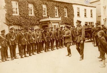 | Keywords: irish civil war irishcivilwar national army nationalarmy roll call rollcall weapons children july 1922 1920s w.d. hogan wdhogan hogan collection hogancollection wednesday 26th twenties bruff limerick ireland munster national library of ireland nationallibraryofireland location identified locationidentified National Army troops lined up for a roll call during the Irish Civil War with local children casting an eye over the proceedings. This photo had been on here for almost 12 months before identification as being in Bruff, Co. Limerick by sbreathnach, to whom thanks are also due for dating confirmation: "...the advance on Kilmallock around the 25-29th of July 1922" Date: Wednesday, 26 July 1922 NLI Ref.: HOG121 National Army troops lined up for a roll call during the Irish Civil War with local children casting an eye over the proceedings. This photo had been on here for almost 12 months before identification as being in Bruff, Co. Limerick by sbreathnach, to whom thanks are also due for dating confirmation: "...the advance on Kilmallock around the 25-29th of July 1922" Date: Wednesday, 26 July 1922 NLI Ref.: HOG121 |