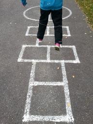 Keywords: jump child man finnish girl panel play hopscotch school yard the playground