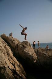 Keywords: jump diving sea action sky
