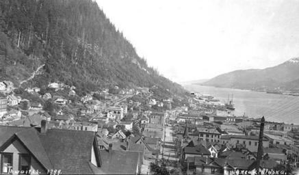 | Keywords: Juneau, bird's-eye view , ca 1912 (THWAITES 192).jpeg check categories 27 October 2016 2 Photograph Creator John E Thwaites Caption on image Juneau Alaska PH Coll 247 430<br/>Located on the mainland of Southeast Alaska Juneau was built at the heart of the Inside Passage along the Gastineau Channel The area was a fish camp for the indigenous Tlingit Indians In 1880 nearly 20 years before the gold rushes to the Klondike and Nome Joe Juneau and Richard Harris were led to Gold Creek by Chief Kowee of the Auk Tribe They found mother lode deposits upstream staked their mining claims and developed a 160 acre incorporated city they called Harrisburg which brought many prospectors to the area The City of Juneau was formed in 1900 The state capital was transferred from Sitka to Juneau in 1906 while Alaska was a U S Territory The Treadwell and Ready Bullion mines across the channel on Douglas Island became world-scale mines operating from 1882 to 1917 In 1916 the Alaska-Juneau gold mine was built on the mainland and became the largest operation of its kind in the world In 1917 a cave-in and flood closed the Treadwell mine on Douglas It produced 66 million in gold in its 35 years of operation Fishing canneries transportation and trading services and a sawmill contributed to Juneau's growth through the early 1900s A federally recognized tribe is located in the community -- the Central Council Tlingit Haida Indian Tribes of Alaska; Douglas Indian Association; Aukquan Traditional Council not recognized Juneau has a Tlingit history with a strong historical influence from the early prospectors and boom town that grew around full-scale gold mining operations Subjects LCTGM Juneau Alaska ; Cities and towns--Alaska; Gastineau Channel Alaska ; Waterfronts--Alaska--Juneau; Piers wharves--Alaska--Juneau; Bird's-eye view prints depicted place Juneau Alaska ca 1912 Institution University of Washington UWASH-THWAITES-source accession number thwaites 192 PD-old-auto-1923 1940 Information field Order Number THW221 Images from the John E Thwaites Photographs of Alaska Collection to check Juneau Alaska Waterfronts |