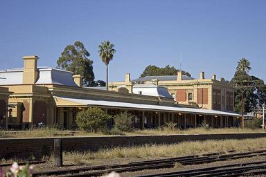 Keywords: 34 47S 147 35E Junee railway station is located on the Main South line in New South Wales, Australia. It serves the town of Junee. Opened 6 July 1878. Attribution: Bidgee