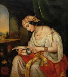 | Keywords: Junge Frau mit Taubenpost.jpg Anonym Umkreis F v Amerling 19 Jh Junge Frau im orientalischer Kleidung mit Brieftaube Oil on canvas 42 x 35 5 cm http //www zeller de/ century 19 anonymous Public Domain PD-Art Pigeon post Images from Auktionshaus Zeller Carrier pigeons in art Females with pigeons in art Paintings of women with birds |