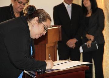 Keywords: indoor Gobernadora de Cabañas, firma luego de ser juramentada. Gobernadora de Cabañas, firma luego de ser juramentada.