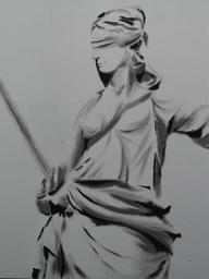 Keywords: justice judgmental justitia justitia horizontal sword tie blindfold woman person abstract drawing image art painting black and white
