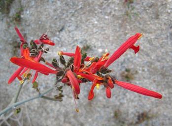 | Keywords: Justicia californica close up.jpg en Red flowers of the hummingbird bush Justicia californica photographed at Anza-Borrego Desert State Park CA It looks like there may be a small crab spider hiding in the central flower in the bottom of the picture Own Ciar Anza-Borrego Desert State Park Red flowers Justicia californica Close-ups of Acanthaceae flowers |