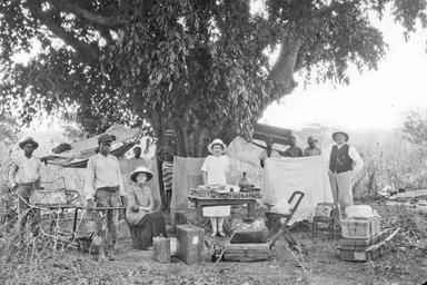 | Keywords: angola methodist shields louise shields louiseshields robert shields robertshields margaret shields margaretshields camping From the left: Louise Raven Shields, probably Margaret Shields (might be Irene), and Robert Shields. No automobile--this trip was on foot and on the wheeled litter on the left. All of the luggage, tarpaulins, etc. had to be carried by their seven porters--even the table and chairs! If two handled the wheeled litter, that left only five to carry everything else. From the left: Louise Raven Shields, probably Margaret Shields (might be Irene), and Robert Shields. No automobile--this trip was on foot and on the wheeled litter on the left. All of the luggage, tarpaulins, etc. had to be carried by their seven porters--even the table and chairs! If two handled the wheeled litter, that left only five to carry everything else. |